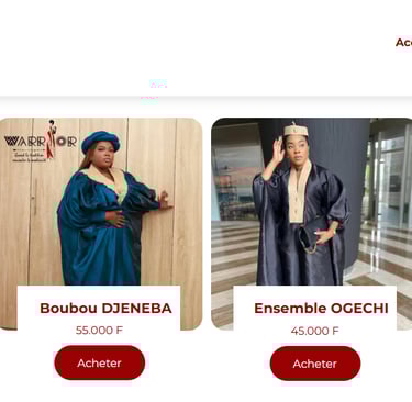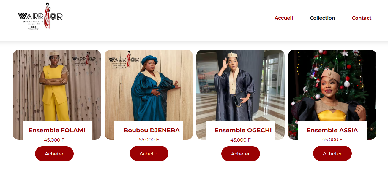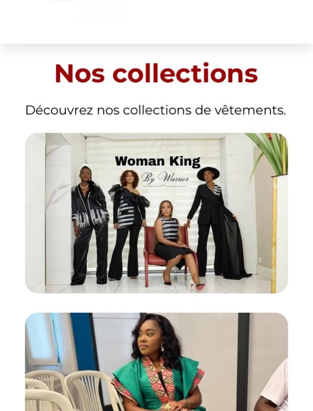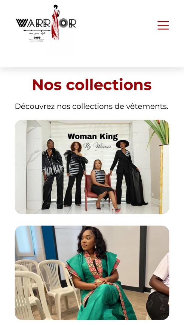 Voici la maquette du site vitrine de la marque Warrior bénin, une marque de vêtements tradi-modernes africains pour femme .